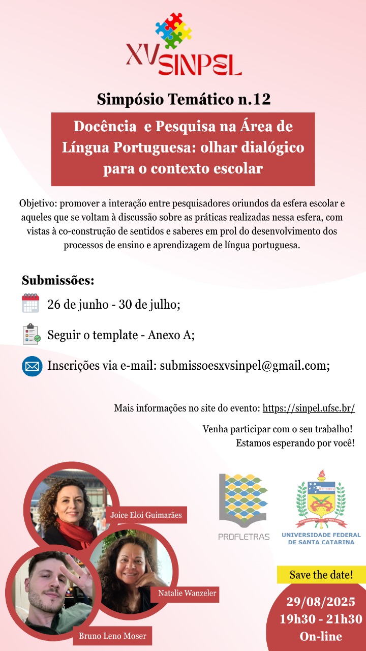 As pesquisas propostas têm como foco práticas de ensino e aprendizagem de língua portuguesa na esfera escolar, com temáticas que envolvem a indissociabilidade entre língua e literatura, a variação linguística e a alteridade no contexto da Educação de Jovens e Adultos (EJA).